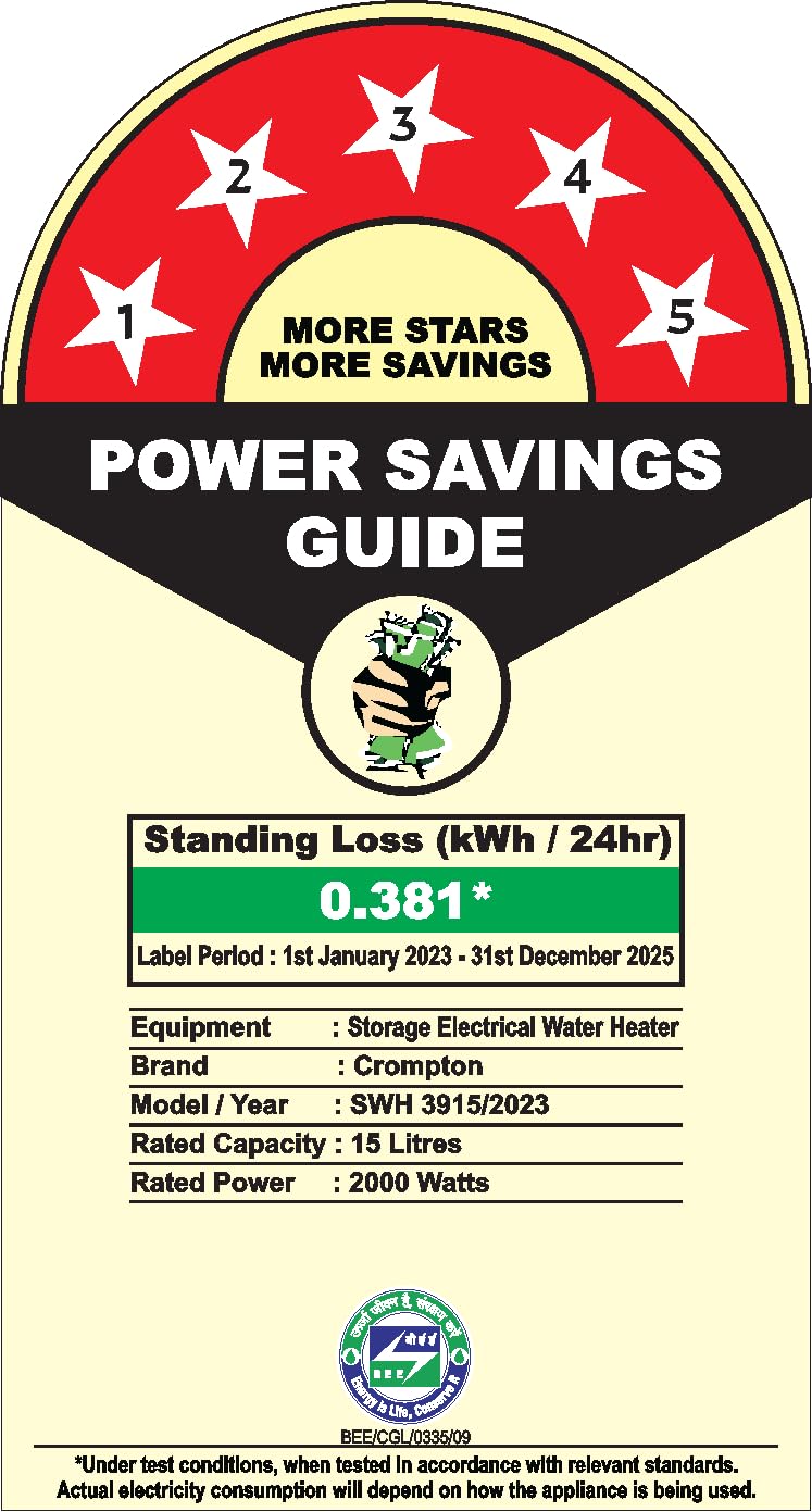 PRODUCT: Crompton's 5 star rated storage water heater with a powerful heating element and glassline Coated tank along with customised bath modes and Color Changing LED Indicator