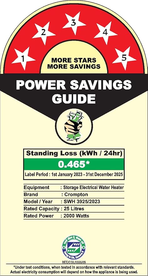 5 Star rated energy efficient : This 5 Star rated energy efficient water heater helps in reducing your electricity bills substantially.